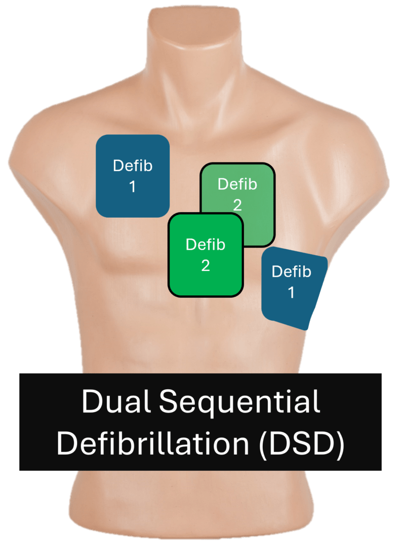 When a patient remains in ventricular fibrillation (VF) or pulseless ventricular tachycardia (pVT) after several shocks, clinicians sometimes attempt alternative strategies such as changing pad position (vector change) or using two defibrillators in sequence (double sequential defibrillation – DSD). The 2025 AHA Guidelines reviewed the available evidence and found no clear clinical benefit for either method at this time.